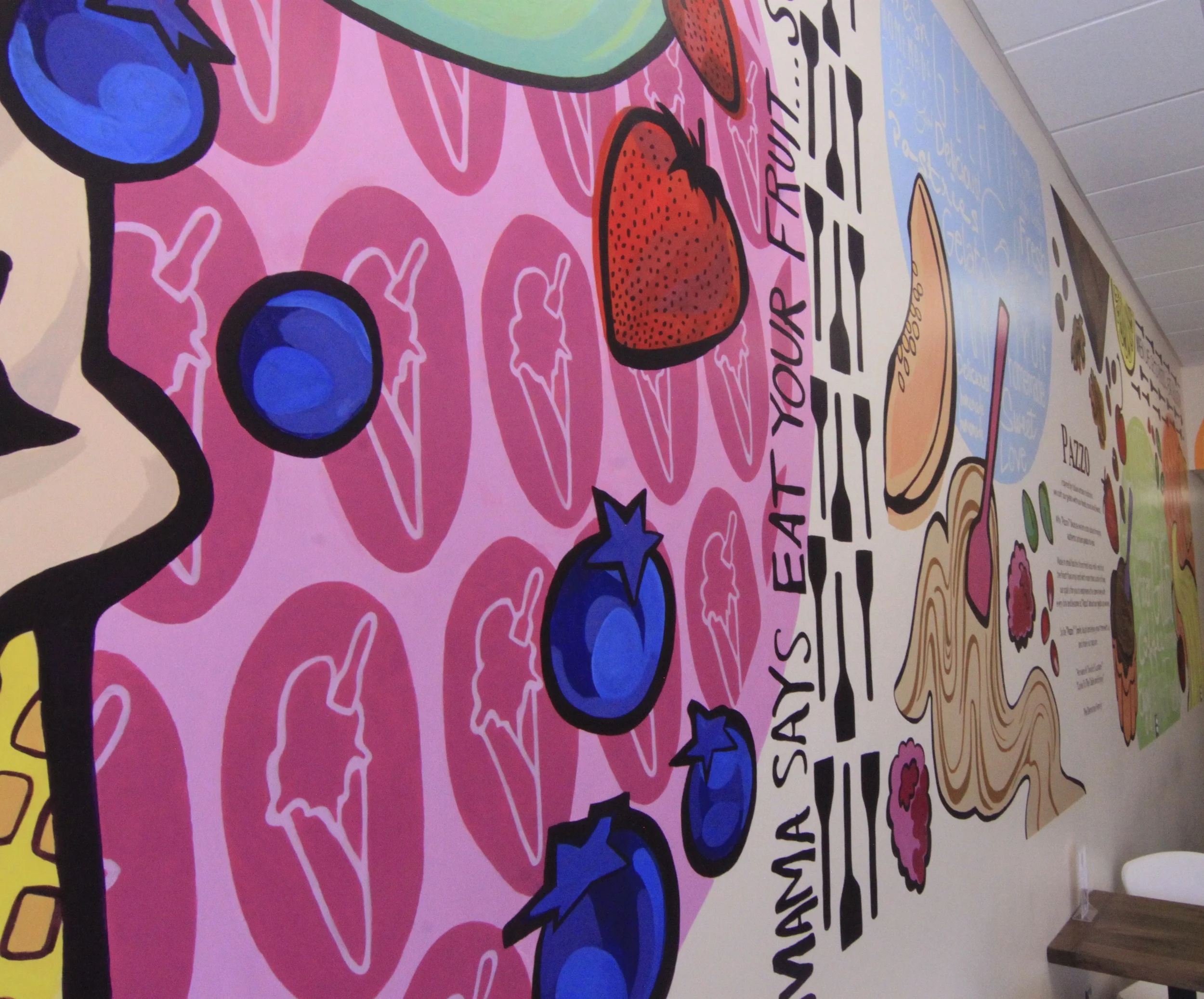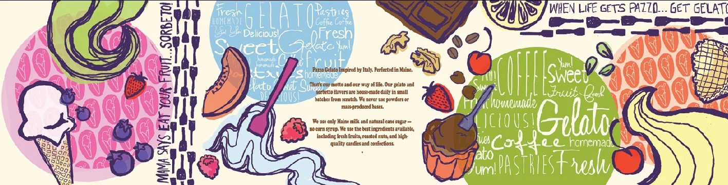 Pazzo Gelato Cafe offers authentic, Italian-inspired artisan gelatos, paninis, and espresso drinks made from the finest quality ingredients sourced from many local purveyors. Pazzo means Crazy" in Italian. Watch this wacky mural come together in the time-lapse video!